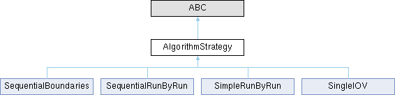 Base class for Algorithm strategies. These do the actual execution of a single algorithm on collected data. Each strategy may be quite different in terms of how fast it may be, how database payloads are passed between executions, and whether or not final payloads have an IoV that is independent to the actual runs used to calculates them. Parameters: algorithm (:py:class:`caf.framework.Algorithm`): The algorithm we will run This base class defines the basic attributes and methods that will be automatically used by the selected AlgorithmRunner. When defining a derived class you are free to use these attributes or to implement as much functionality as you want. If you define your derived class with an __init__ method, then you should first call the base class `AlgorithmStrategy.__init__()` method via super() e.g. >>> def __init__(self): >>> super().__init__() The most important method to implement is :py:meth:`AlgorithmStrategy.run` which will take an algorithm and execute it in the required way defined by the options you have selected/attributes set.