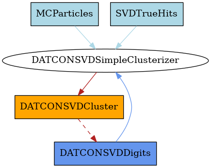 DATCONSVDSimpleClusterizerModule: This class performs a simple clusterisation and noise filtering of SVD hits (DATCONSVDDigits in this case).