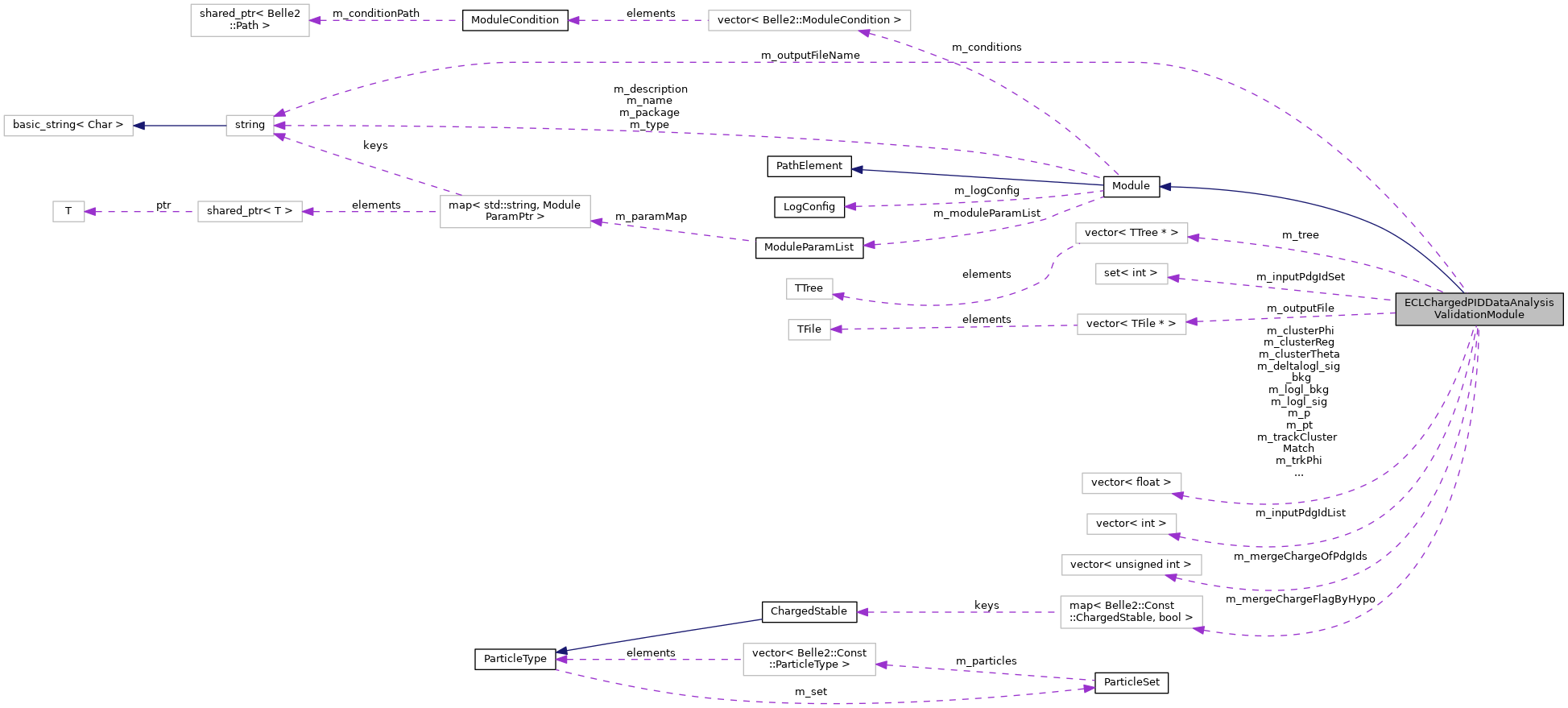 This module dumps a tree and a set of histograms of ECL PID-related info used for validation, starting from an input file w/ particle-gun-generated charged stable particles (and antiparticles). More...