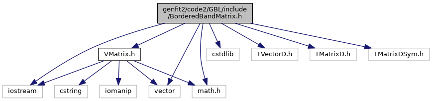 Include dependency graph for BorderedBandMatrix.h:
