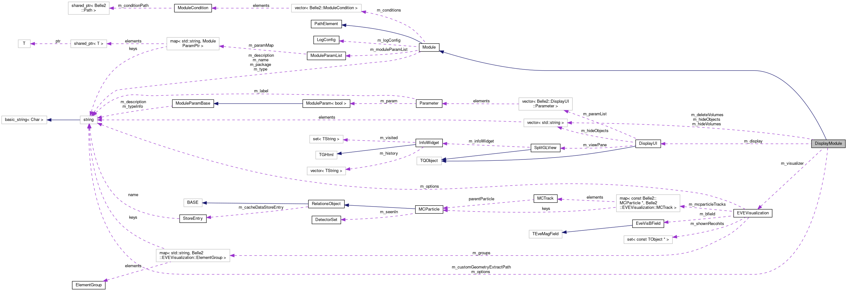 The DisplayModule itself is responsible for fetching data on hits, tracks and relations from the data store, and passes them along to the EVEVisualization class, which is responsible for creating visualizations using the TEve classes.