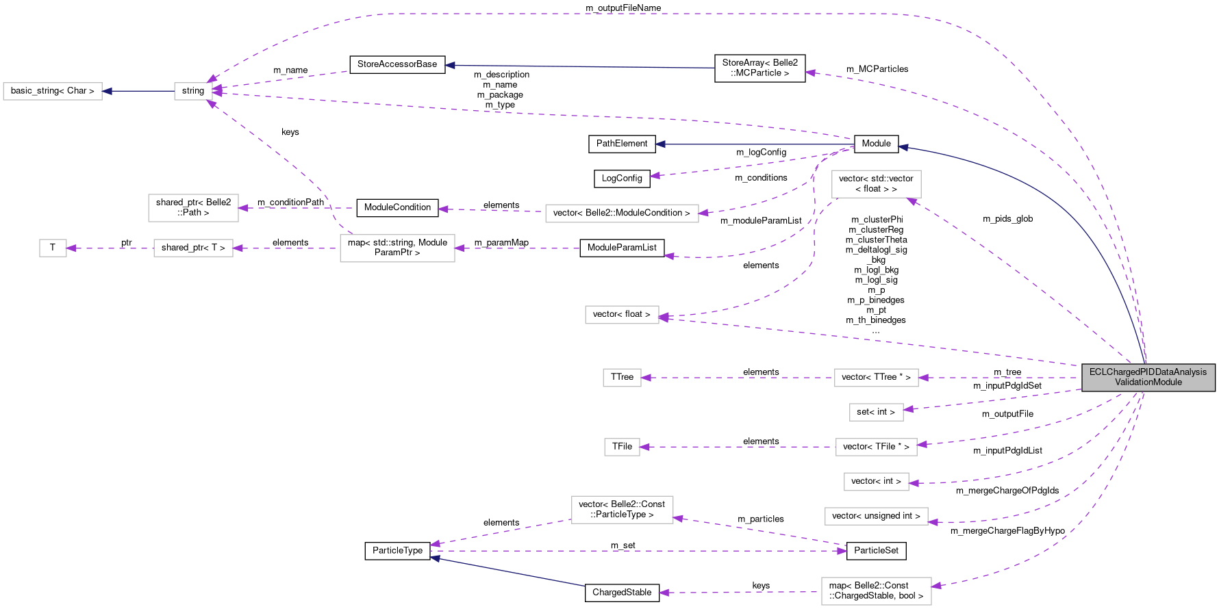 This module dumps a tree and a set of histograms of ECL PID-related info used for validation, starting from an input file w/ particle-gun-generated charged stable particles (and antiparticles). More...