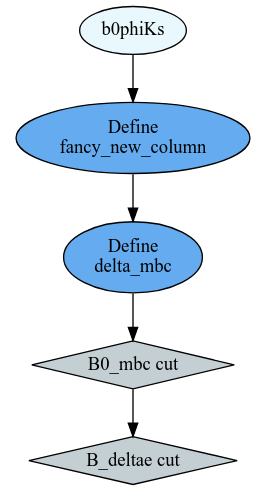 The condition can be passed either as a C++ expression in a string or as a python function. Defining new columns works in the same way: