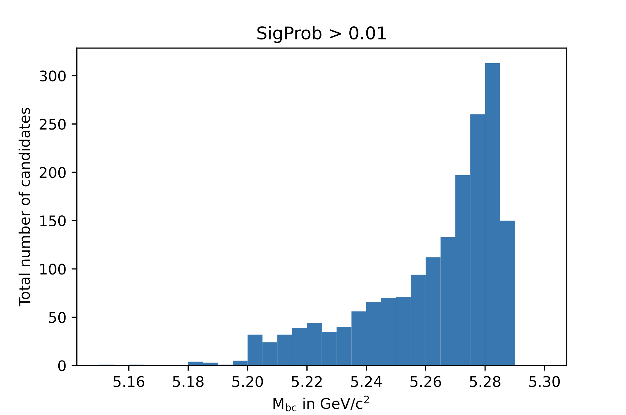 NOTE: A histogram of Mbc will look quite different in this part of the exercise,