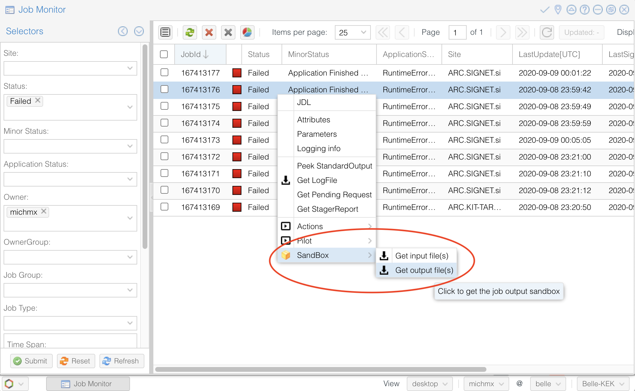 Fig. 3.35 How to download the output sandbox from the Job Monitor.#